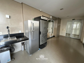Cozinha com persiana automática que isola sala e varanda da cozinha;