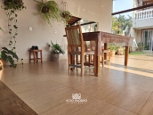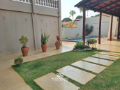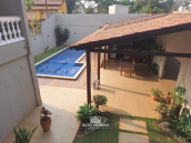 Sobrado de 480m² de área de lote e 364m² de área construída com 4 quartos, sendo 3 suítes plenas, uma sacada dividida entre duas suítes, área com piscina e churrasqueira a carvão.