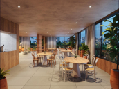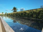 Terá duas portas com acesso social e acesso de serviço. O apartamento terá acesso pelo Hall de circulação comum através de 03 (três) elevadores sociais, 01 (um) elevador de emergência e caixa de escada.