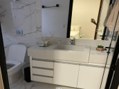 -Completa em armários, box de banheiro, espelho, ar-condicionado, cortinas;