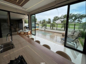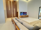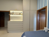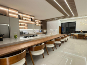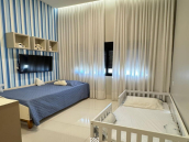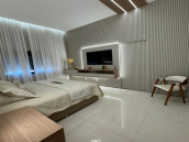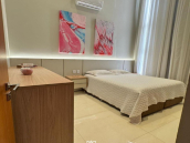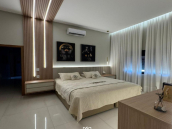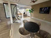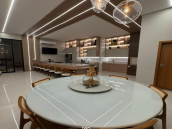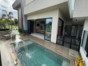 Casa mobiliada com 563,57m² área total e 243,27m² de área construída, 4 suítes, 4 vagas de garagem. Ótima localização ao lado da portaria do condomínio.