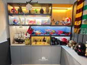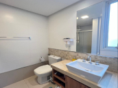 -Banheiros com boxe bancadas em mármore com cubas de sobrepor;