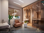 -Banhos revestidos na região do box/banho e com bancada em porcelanato;
